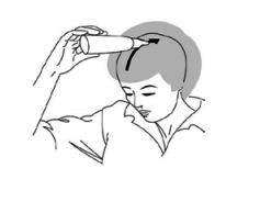 - Segurar o frasco pela sua base e apoiar o aplicador diretamente sobre a área afetada do couro cabeludo.