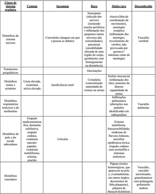 Entretanto, efeitos colaterais adicionais já foram descritos em frequência variável em pacientes expostos à medicação.