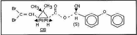 Preparações tópicas contendo Deltametrina (substância ativa) apresentam estabilidade térmica, entretanto, se exposta a radiações UV, pode ocorrer um processo de isomerização do tipo cis-trans, ocasionando a perda do átomo de bromo e alterando as propriedades farmacológicas do produto.