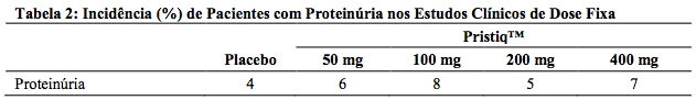 Proteinúria maior que ou igual a traços foi observada nos estudos controlados de dose fixa (vide Tabela 2). Essa proteinúria não foi associada a aumentos no BUN ou na creatinina e, em geral, foi transitória.