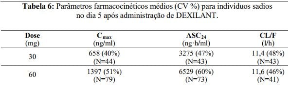 Os parâmetros farmacocinéticos do dexlansoprazol são altamente variáveis, com valores percentuais de coeficiente de variação (CV%) para Cmax, ASC e CL/F superiores a 30%, e estão resumidos na Tabela 6