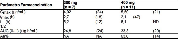 Em um estudo de farmacocinética com 24 lactentes e crianças saudáveis, pacientes pediátricos entre 1 e 48 meses de vida, evidenciou exposição aproximadamente 30% menor (AUC) do que a observada em crianças com mais de 5 anos de idade. O Cmáx foi menor e o clearance por peso corporal foi maior em lactentes e em crianças.