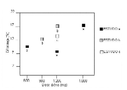 Os dois estudos apresentaram diferenças significativas de eficácia em comparação ao placebo em todas as doses testadas.