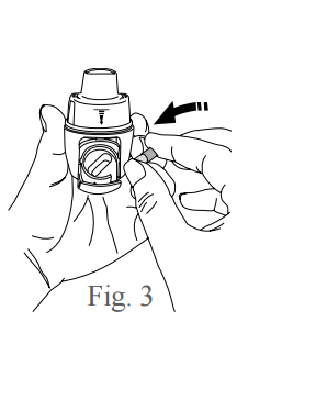 Atenção: Quando você estiver segurando o inalador durante a inalação, tomar cuidado para não bloquear as entradas de ar localizadas nas laterais do bocal do inalador, pois isto pode impedir a entrada do ar, reduzindo o movimento da cápsula e consequentemente a dispersão do medicamento. Não empurre o bocal para baixo durante a inspiração, pois isto pode bloquear o movimento da cápsula.