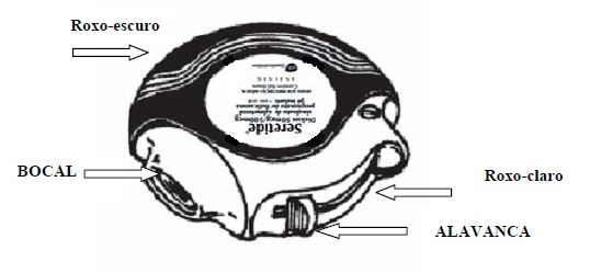 Segure o Diskus com o bocal de frente para você. Pressione a alavanca identificada na Figura 1B, até o fim (você ouvirá outro clique), na direção indicada pela Figura 2. O Diskus está pronto para ser usado. Toda vez que essa alavanca for pressionada, uma nova dose será liberada para aspiração e o marcador indicará uma dose a menos.