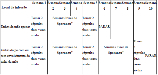 Terapia cíclica para infecção da unha2 cápsulas uma vez ao dia1 semana