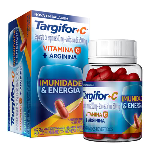 Vitamina C 500Mg + Arginina 500Mg Targifor+C 60 Comprimidos na Drogaria Drogasil